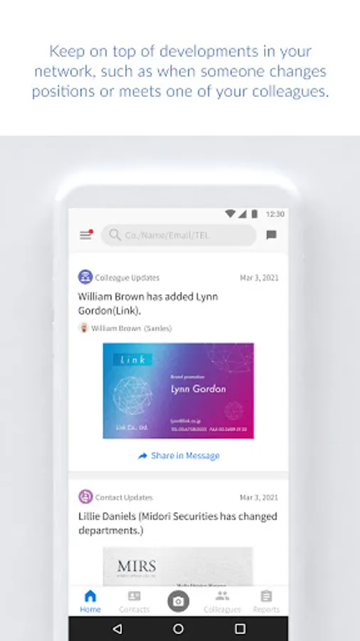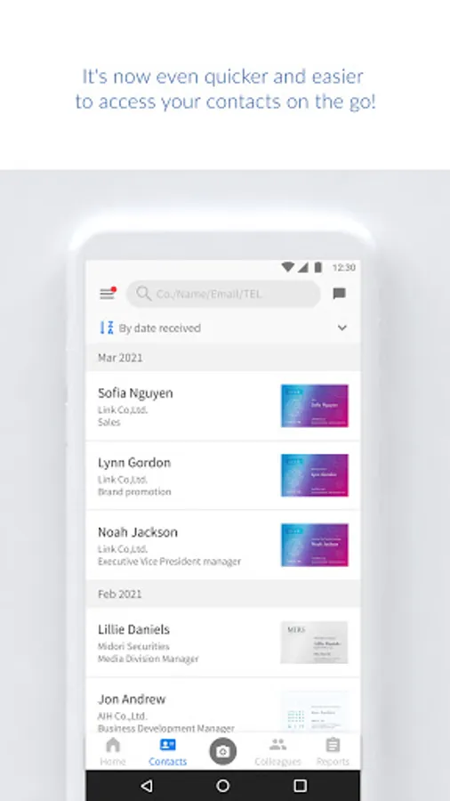 Sansan's Mobile App (available here for users contracting with Sansan) lets you to access an array of valuable information at any time and from anywhere.