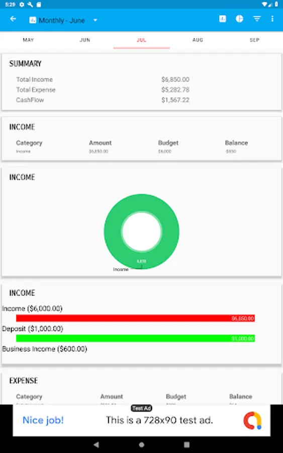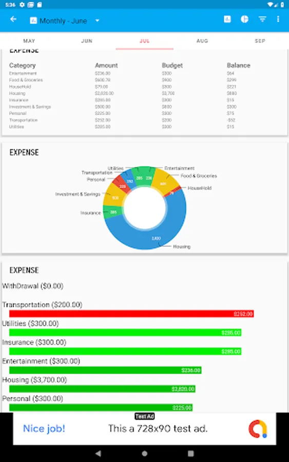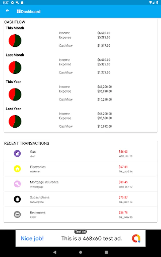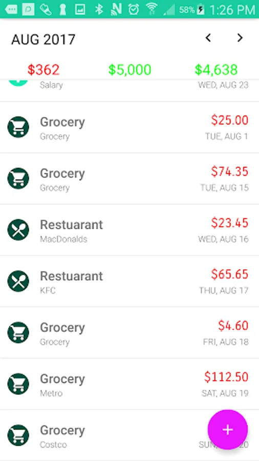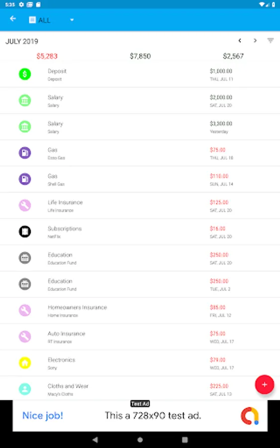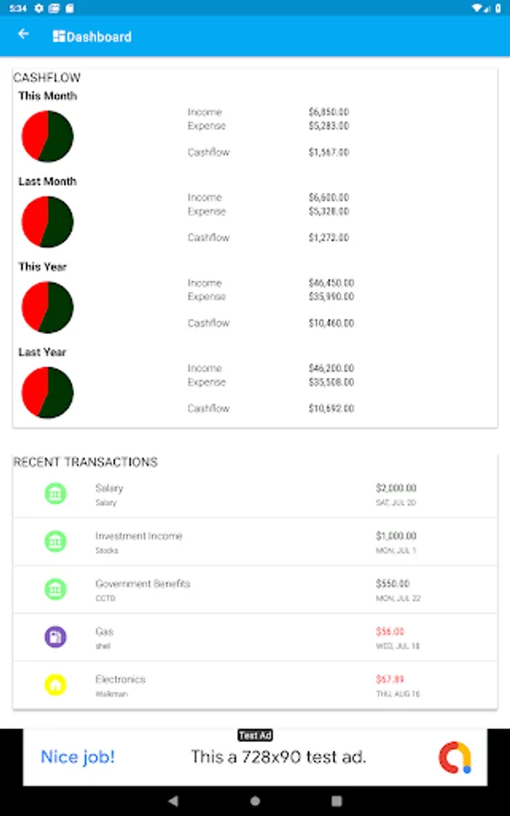 This simple app can be used to quickly track your income and expenses. The features implemented are
