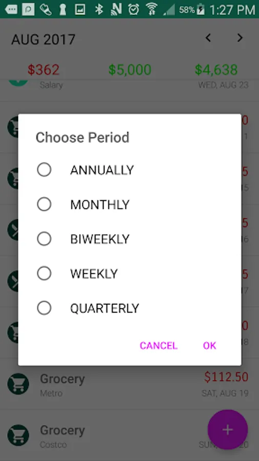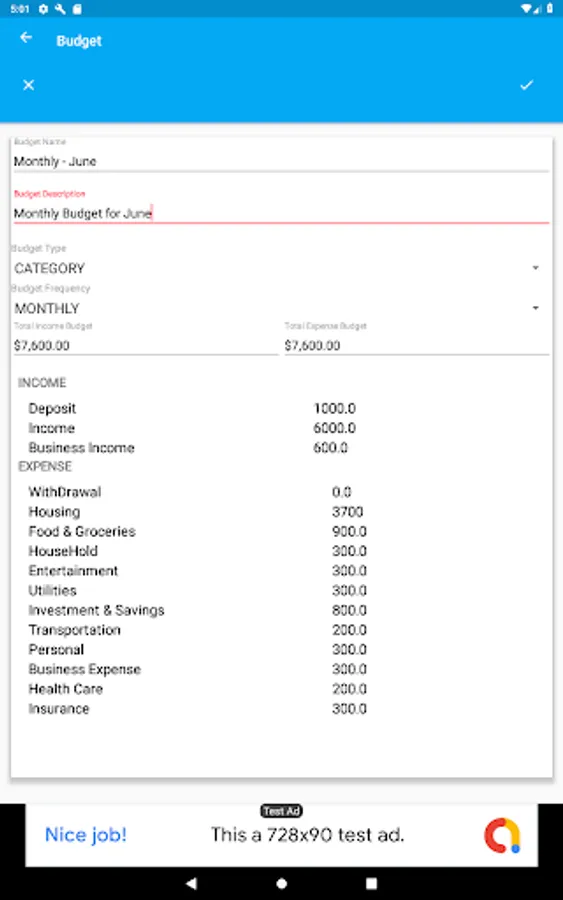 Using this section to set up a budget. You can create multiple budgets. You can create budgets for a time period such as monthly, bi-weekly, quarterly, yearly, etc. The budget can be created on SubCategories or on categories.