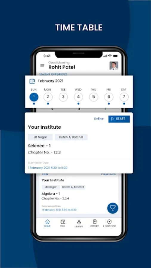 Teachers and students directly connect on the app as per the schedule. No need for your teachers to create and monitor multiple links for every batch and every lecture.