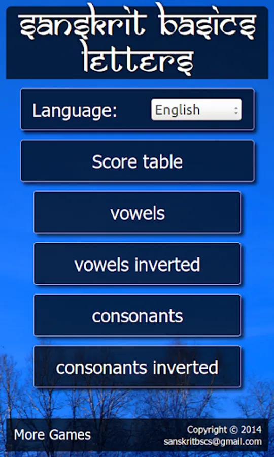 This program offers the ability to learn Sanskrit letters in a simple question-answer form.