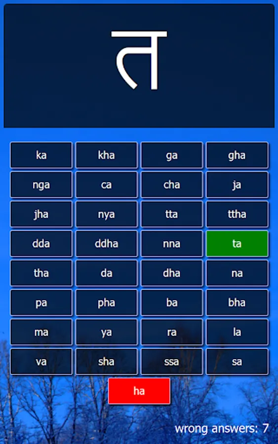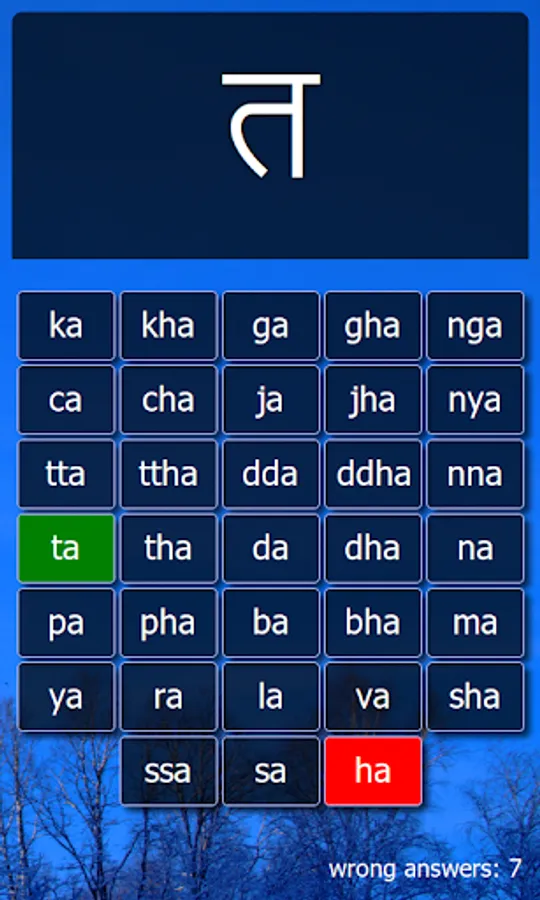 Try to get at least 108 right answers a day and soon you'll become familiar with Sanskrit letters.