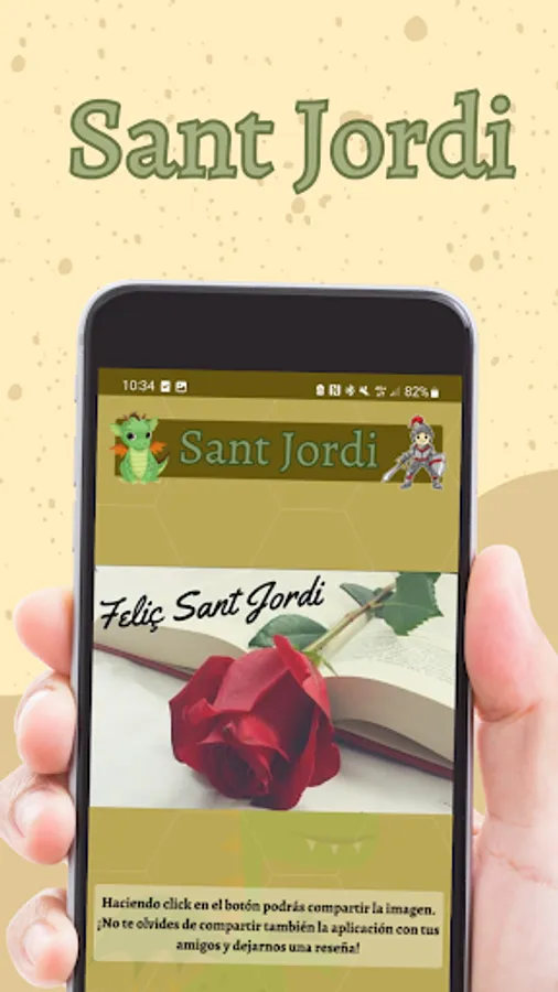 The app is designed to be fast and efficient. All the images to congratulate Sant Jordi are optimized so that they can be shared quickly and without problems on any device. Also, all the images of Sant Jordi roses and books are downloaded in the background so you can continue using the application while the images are downloading.