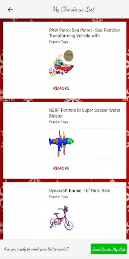 Santas Helper is an application that collects toy and gift information from all over the internet. Use the help of the magical elf and Santa Claus to select toys and video games. After a child chooses his/her Christmas list he can send it off to the north poll and be certain that Santa received his/her list. The parent will then receive a nice convenient email with product details, images, pricing, links, and the location of where to purchase the things on their kids list. The app includes everything from video game consoles like Xbox and Playstation to Toys like LOL and Power Wheels. It also has video games like Spiderman and educational Vtech devices. We hope that you enjoy our product. If you have any questions please visit us on the web.