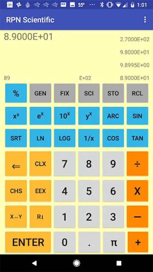 RPN Scientific is a scientific Reverse Polish Notation (RPN) calculator based on the venerable Hewlett Packard 10C scientific calculator. It performs most of the 10C’s math functions, but does not include the ability to be programmed. It is free, does not contain any advertisements, and does not collect information about you or your phone.