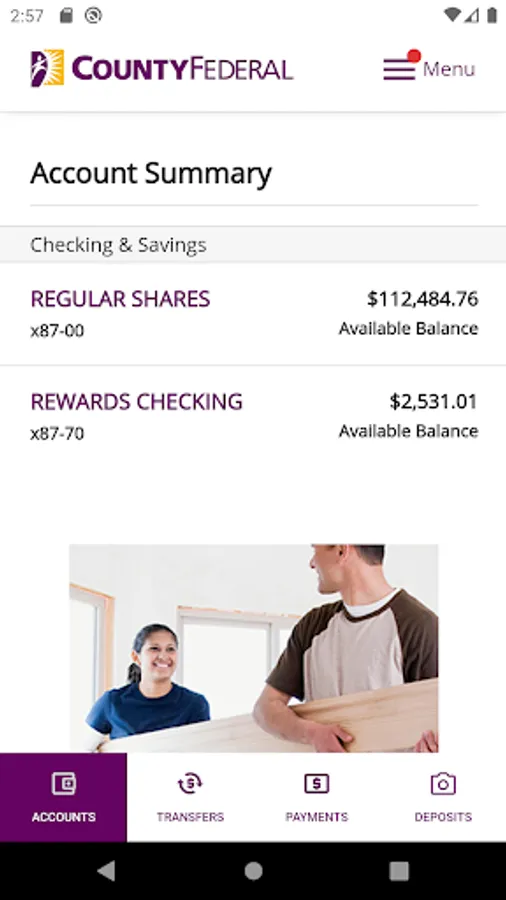 The County Federal Mobile Banking App lets you securely manage your accounts virtually anytime, anywhere. Check your account activity and balances, pay bills, transfer funds, set up alert notifications – and much more.