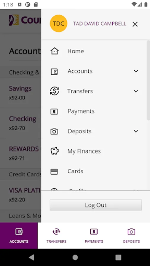 • Card Manager: Turn off/on your County Federal debit or credit cards