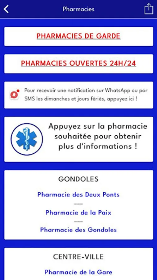 It brings together practitioners and their places of consultation in the city, general and specific care structures, pharmacies, medical analysis laboratories, ambulance services and the supply of care for animals.