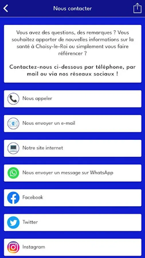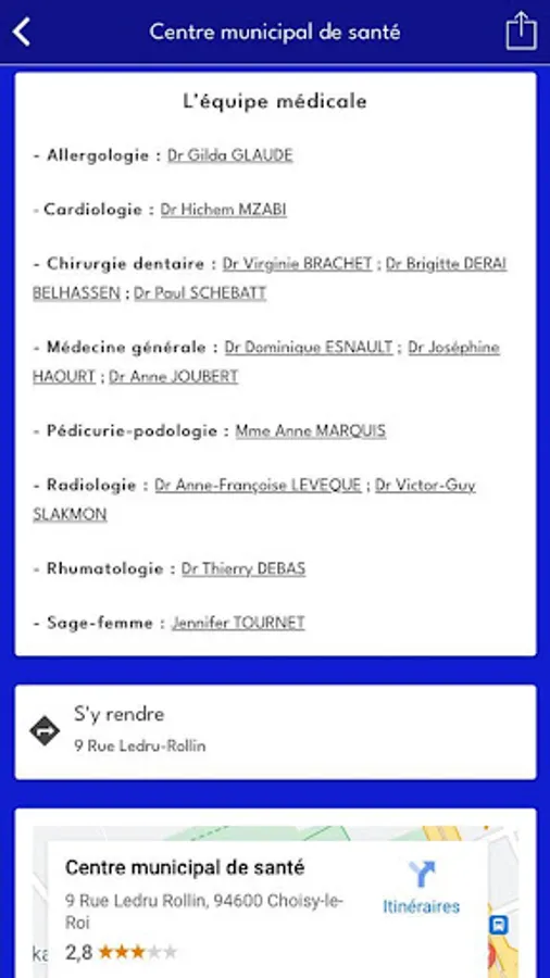 Its goal is to make your life easier with a quality application. Quite simply, the purpose of this application is to simplify any research related to health in Choisy-le-Roi!