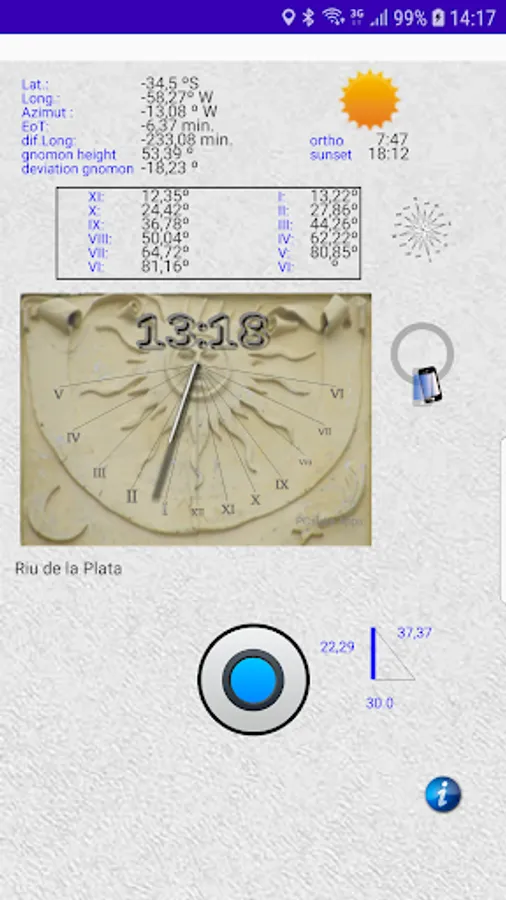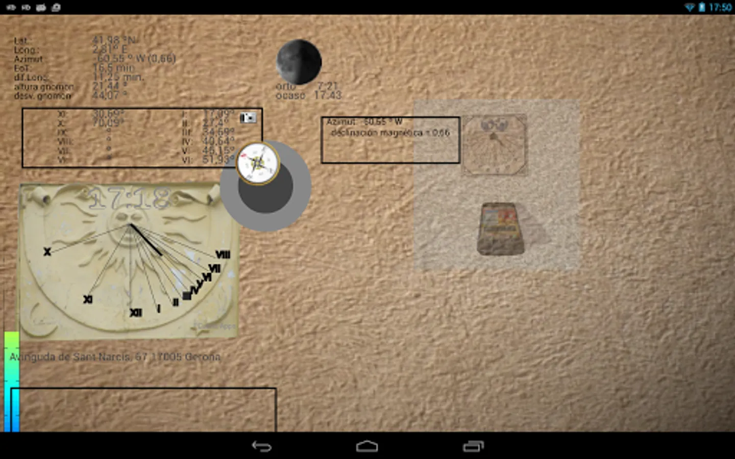 Utility that calculates a sundial Vertical declination or not (or see an existing one), dynamically. It provides results of Latitude, Longitude, Geographic Location and drawing angles for each hour of the day they are visible to a given orientation.