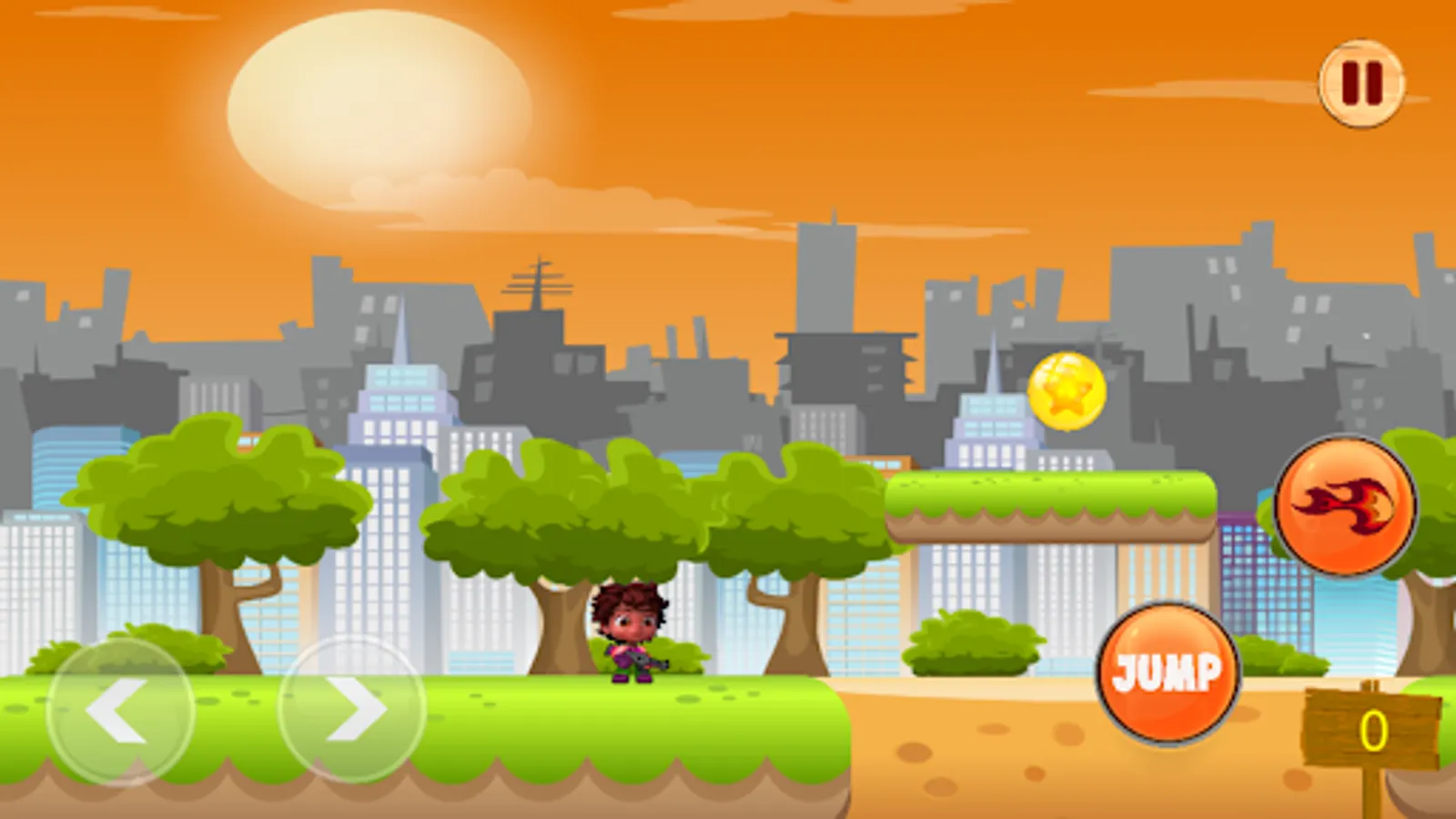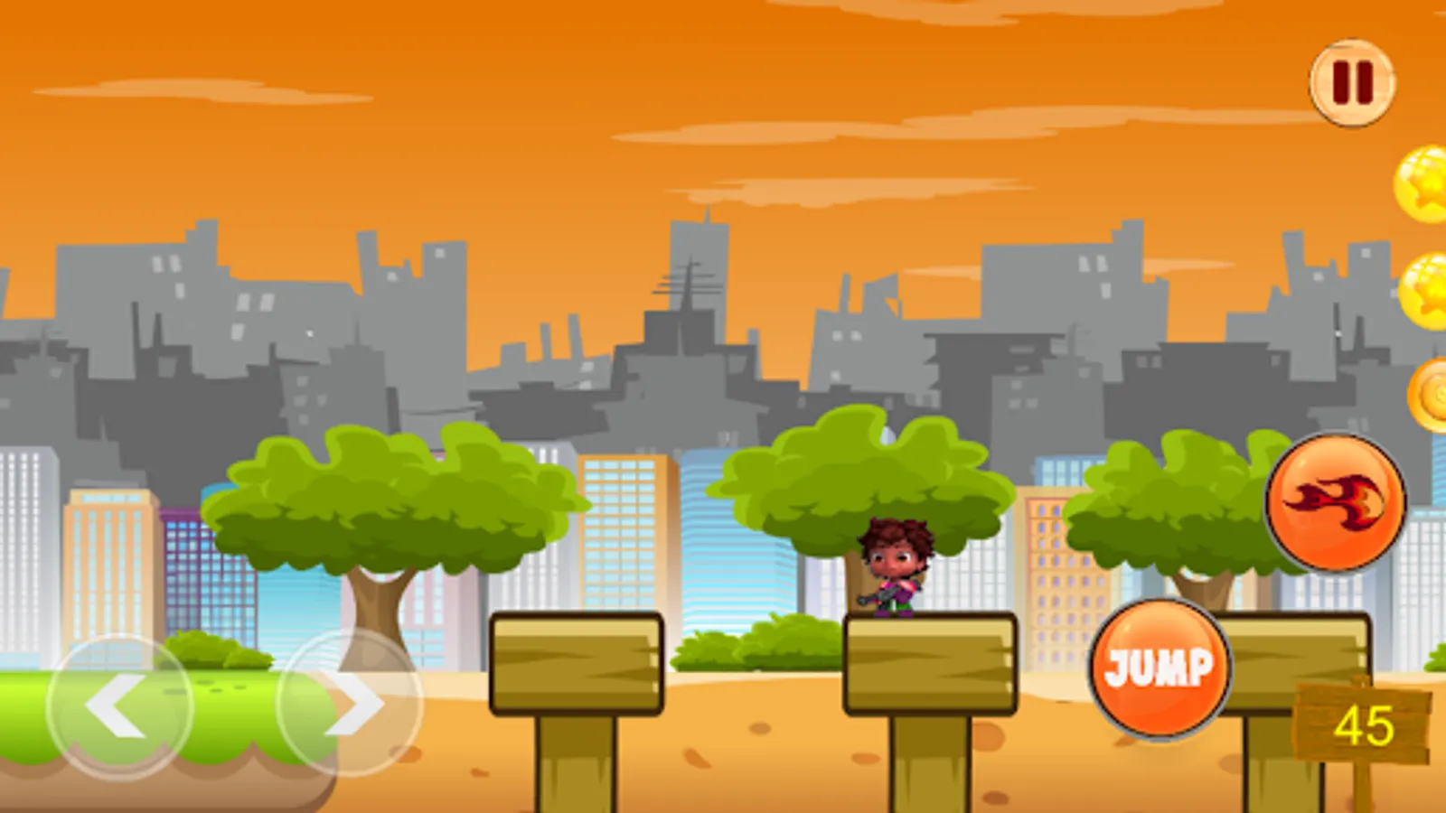 After opening the app, choose your level and start playing, then run, jump and shoot