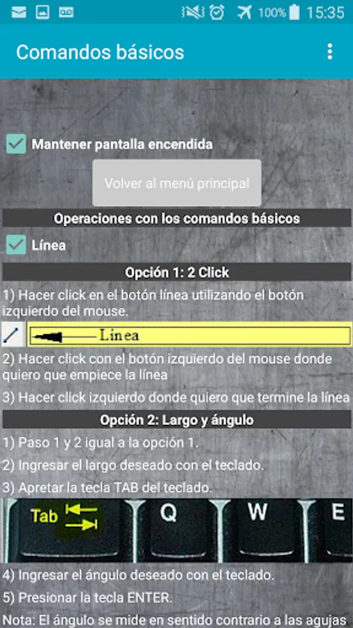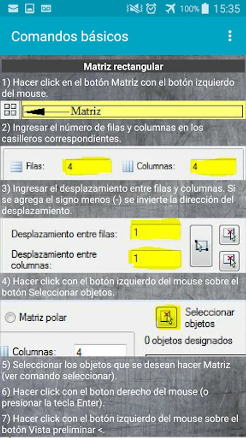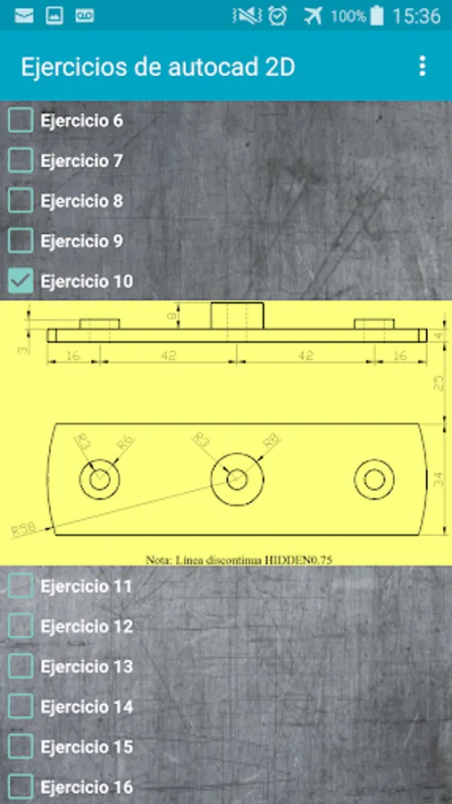 This app contains an exercise guide and an explanation of the basic commands to start drawing in autocad 2d.