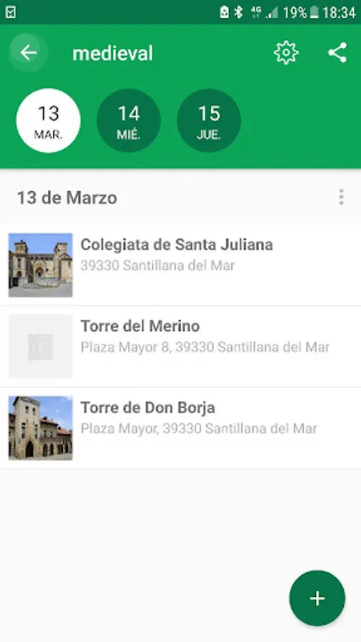 Hiking trails in section 6 of the municipality usual routes, with details of each information and geo on the map of the selected route, and its various stages are available. In the Agenda section you will find a list of events and activities Santillana. The Trip Planner section allows the user to organize by theme (renaissance and baroque, Handicrafts and typical products, fountains and parks, museums and exhibitions, Santillana Medieval) places of interest to visit during your entancia in Santillana del Mar, and organize them by specific days.