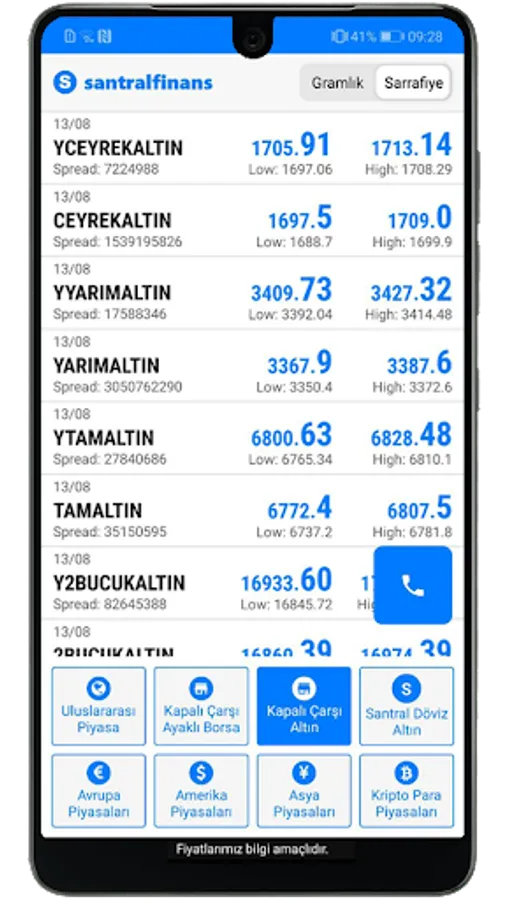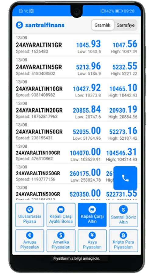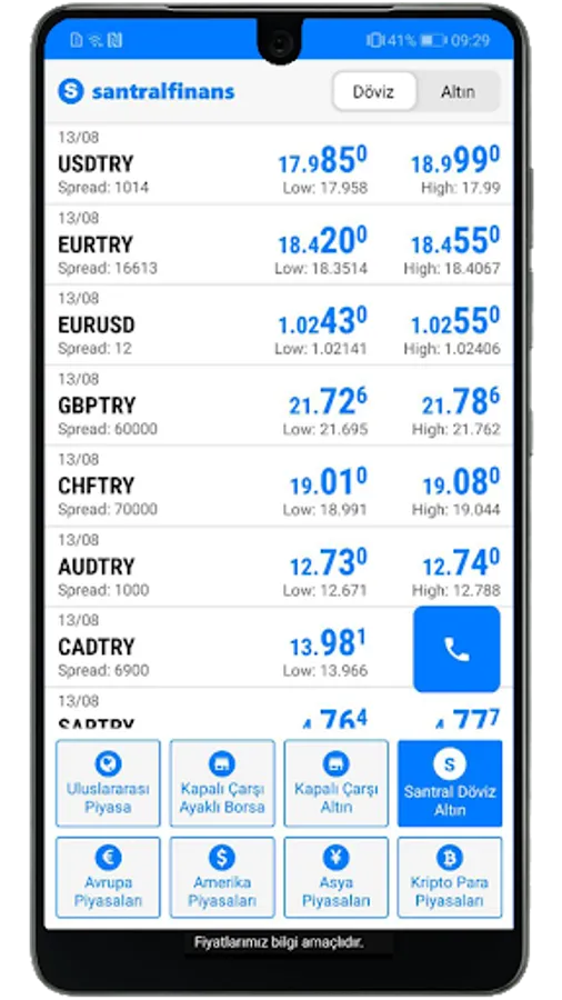 With Santral Currency application, you can watch the current Grand Bazaar prices, free market, foreign exchange, stock market, instant values of gold and cryptocurrencies for free.