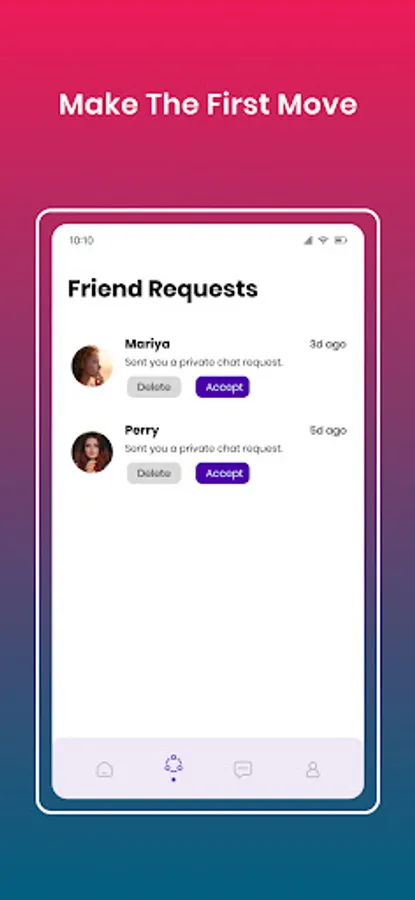 Once you've found someone who piques your interest, send them a friend request and dive into the world of private messaging. Our secure and reliable chat feature, powered by Firebase, ensures smooth communication between you and your potential matches. Get to know each other, exchange thoughts, and let your cosmic chemistry unfold.