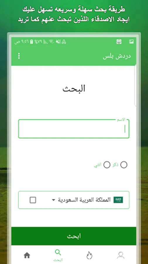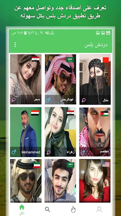 - The application has the advantage of searching by name and type, whether men or women and also search the area where you live to find friends close to you and live in the same area