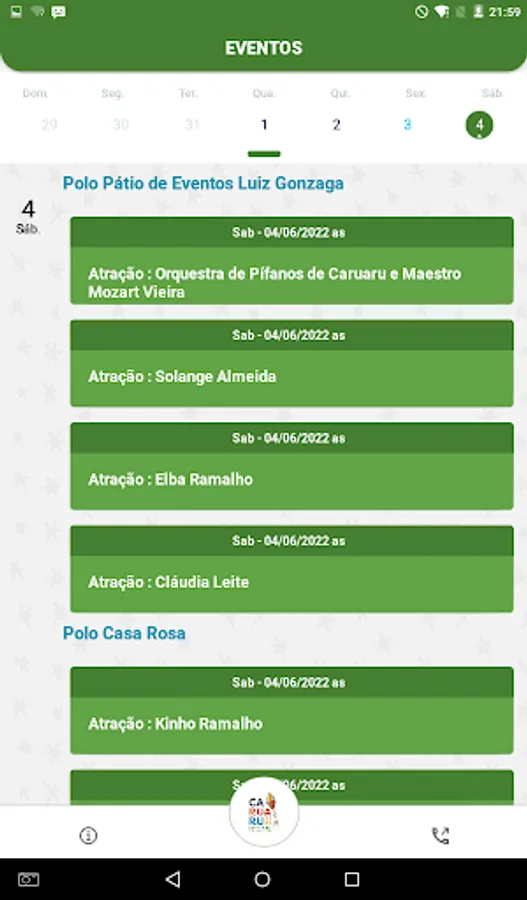 The São João de Caruaru application allows users to access the schedules of the main party centers in a dynamic and guided way. Through the application it is also possible to find the places where June activities and actions take place using maps that will trace routes for all Caruaruenses and tourists to the chosen poles. In addition, users will have access to contact numbers that can facilitate assistance in the event of any emergency. Discover the attractions of São João de Caruaru, the biggest and best São João in the world!
