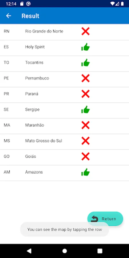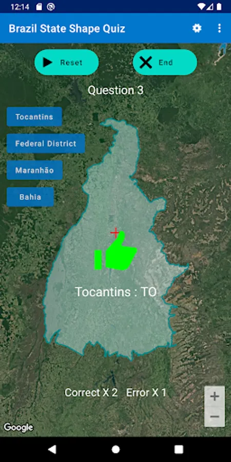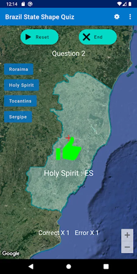This app is to choose the state from the state shape of Brazil states with 4 choices.