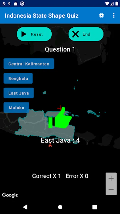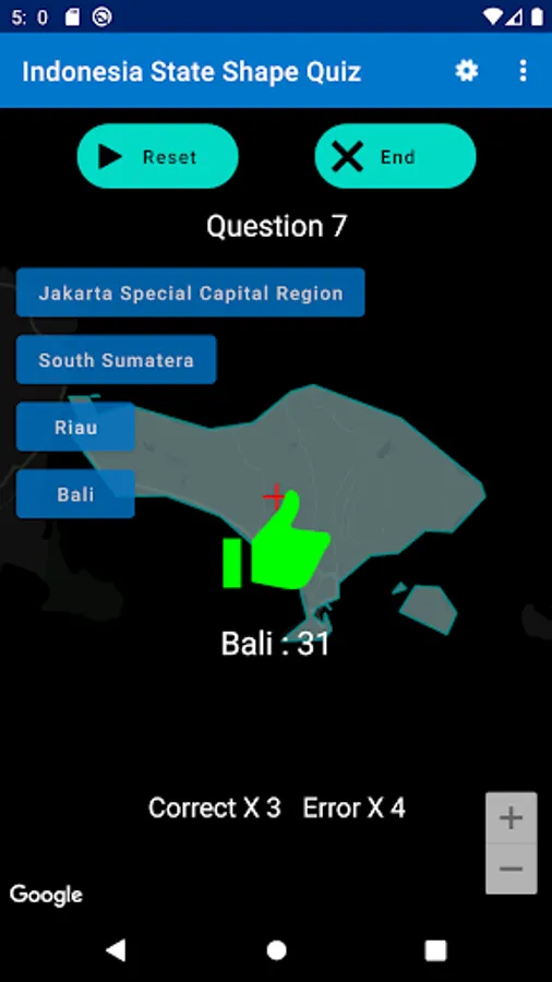 This app is to choose the state from the state shape of Indonesia shape with 4 choices.