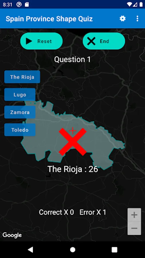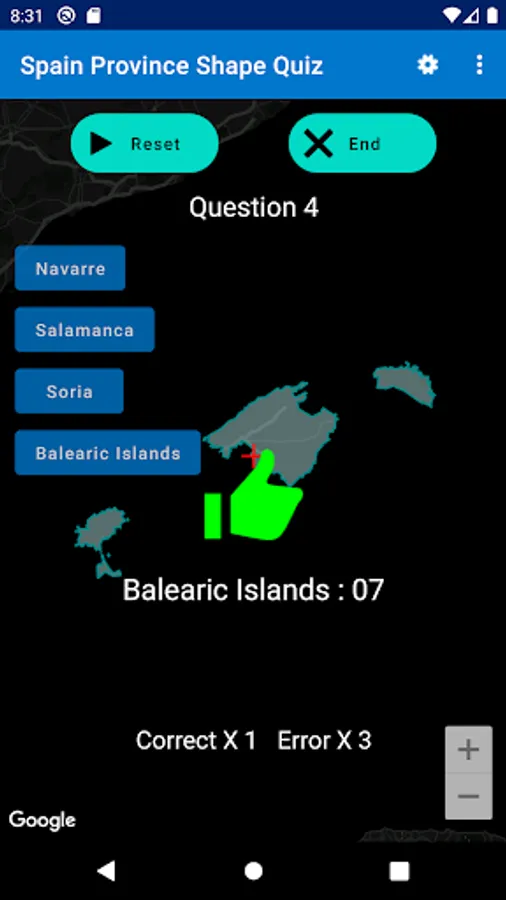 This app is 4-choice quiz to guess the name of the province of Spain from the shape.