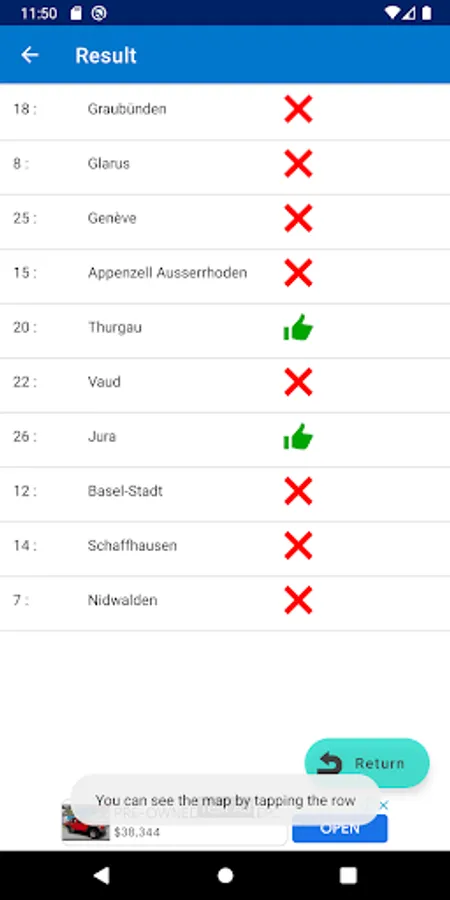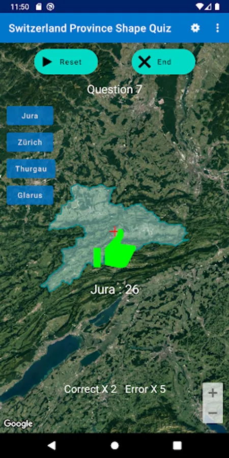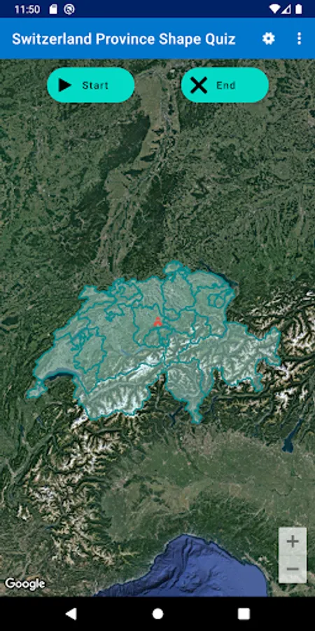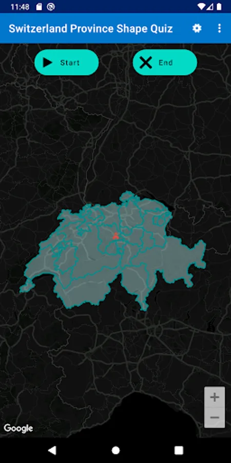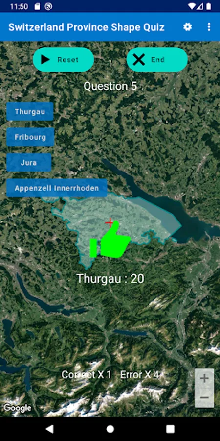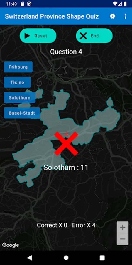 This app is to choose the state from the state shape of Swiss provinces with 4 choices.