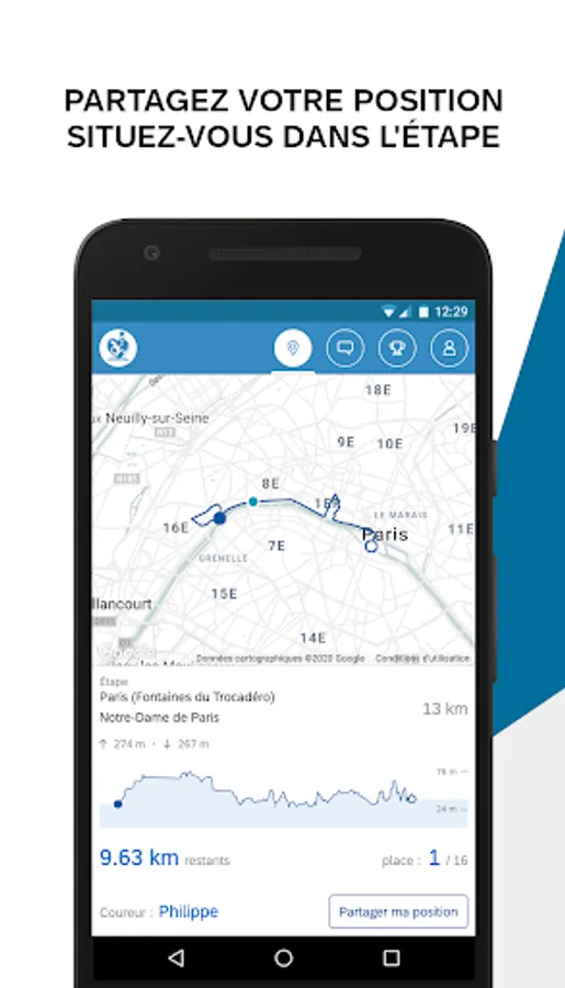 Thanks to this application, runners can access the standings, share their position and discuss with their supporters.