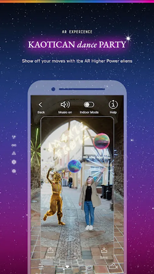 ● Make your own Music Of The Spheres video. Use AR filters to place you and your friends among planets and aliens from the album universe. Do as many takes as you like before you record and share your sci-fi masterpiece.