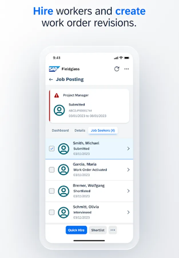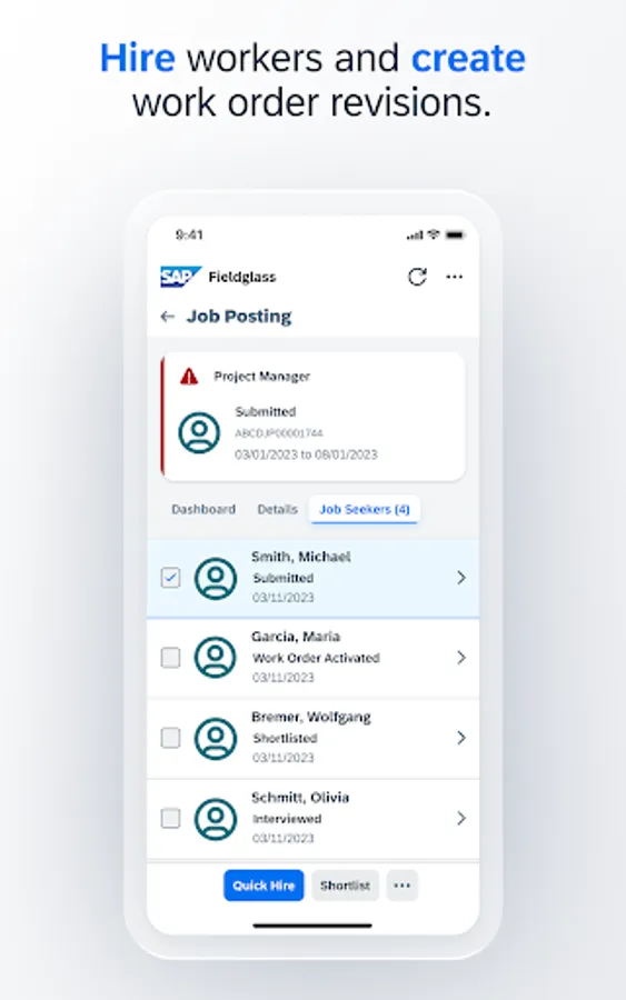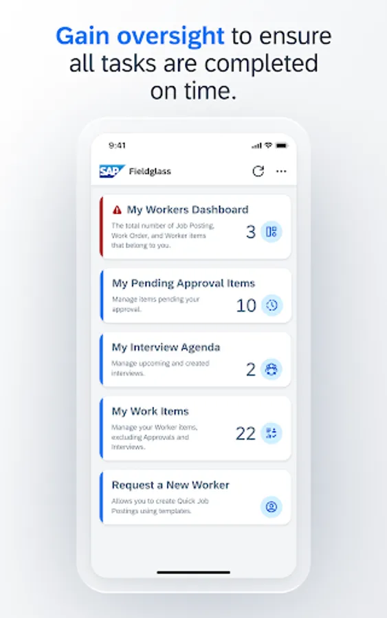 With the SAP Fieldglass Manager Hub mobile app for Android, customers (as opposed to suppliers or workers) can access the My Workers Dashboard in the SAP Fieldglass application and perform frequently used actions for managing job postings, job seekers, work orders, and workers anywhere and anytime.