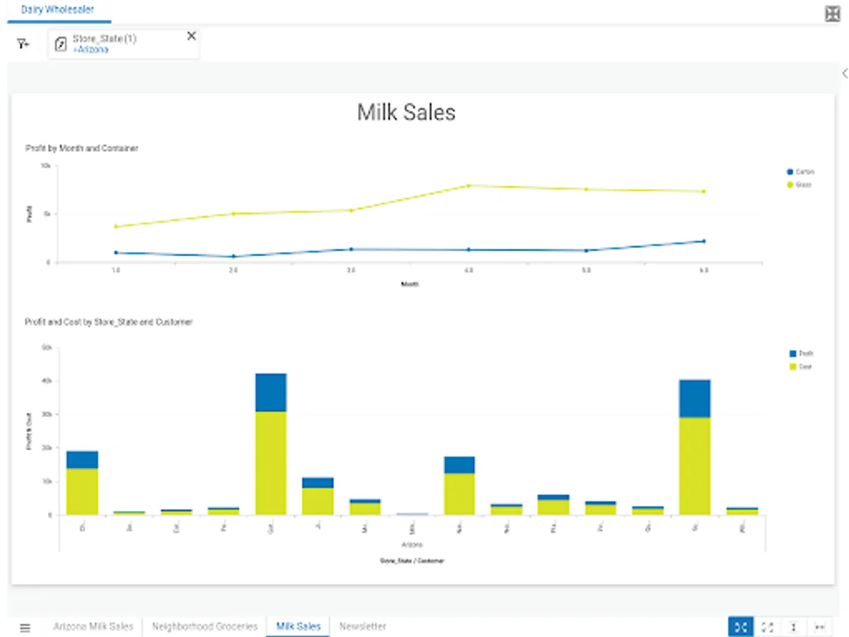 • Leverage advanced report analysis functions, such as drill, hierarchies, prompts, input controls, and sections