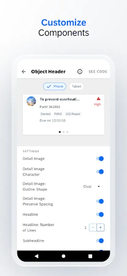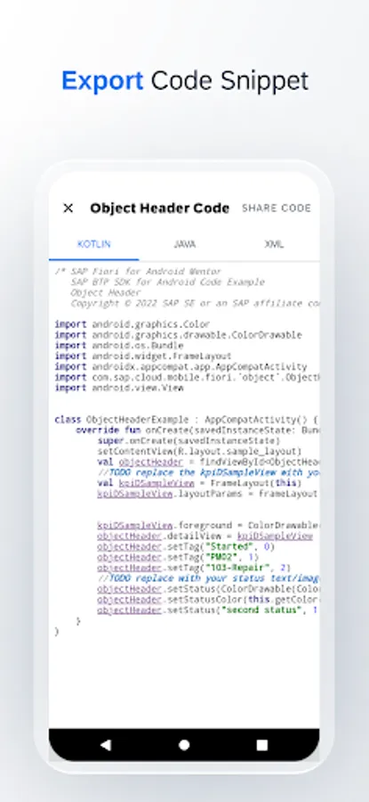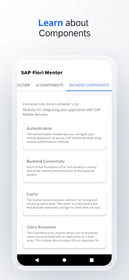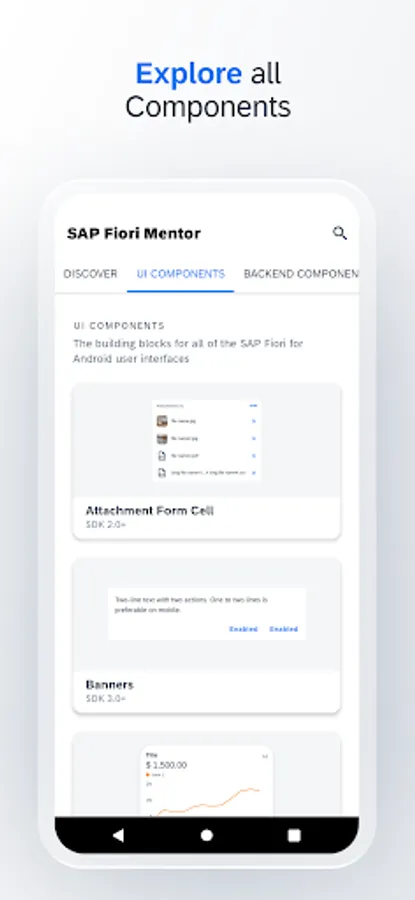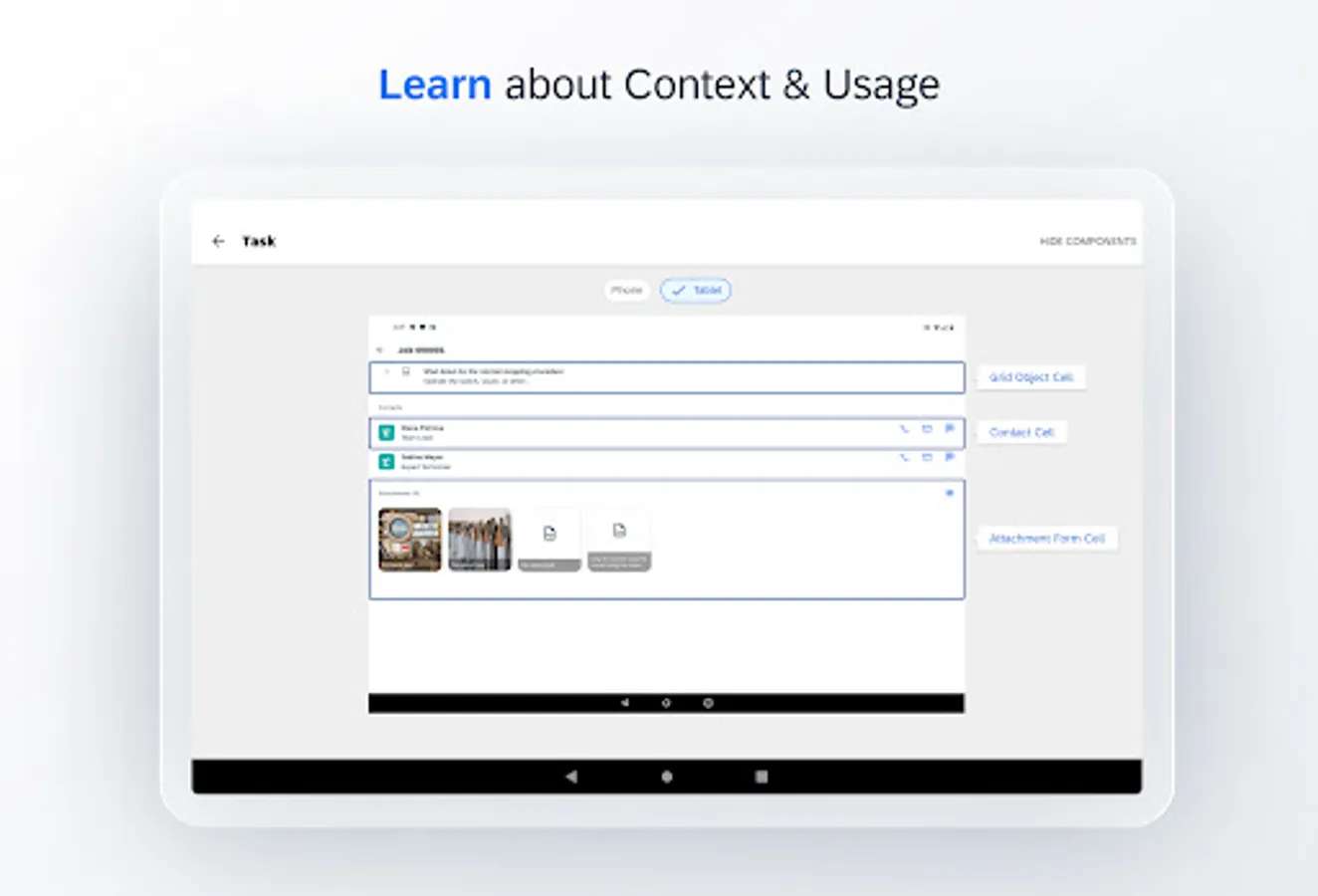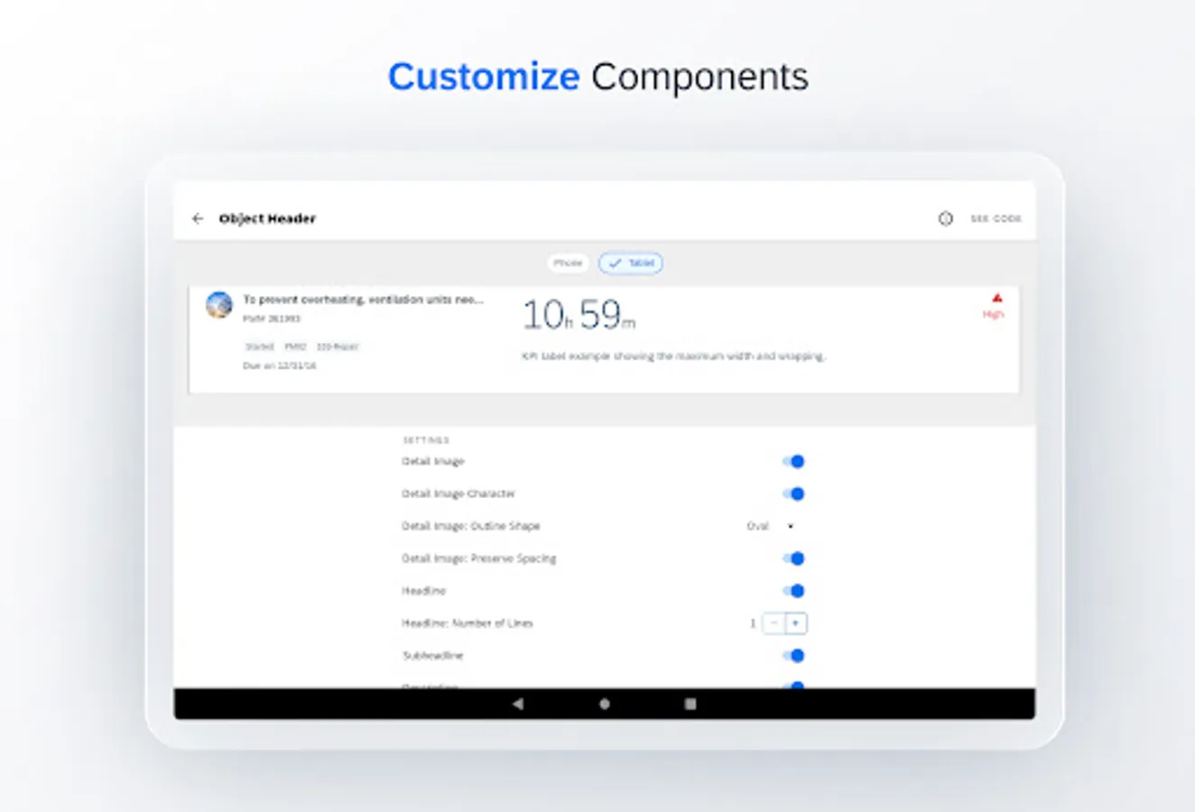 With the SAP Fiori Mentor mobile app for Android, you can access interactive documentation anywhere and anytime. This app, which is optimized for tablets, connects to the SAP BTP SDK for Android and allows designers and developers to streamline the creation of SAP Fiori apps on Android, view live previews of all UI components, and change parameters to see the effect immediately.