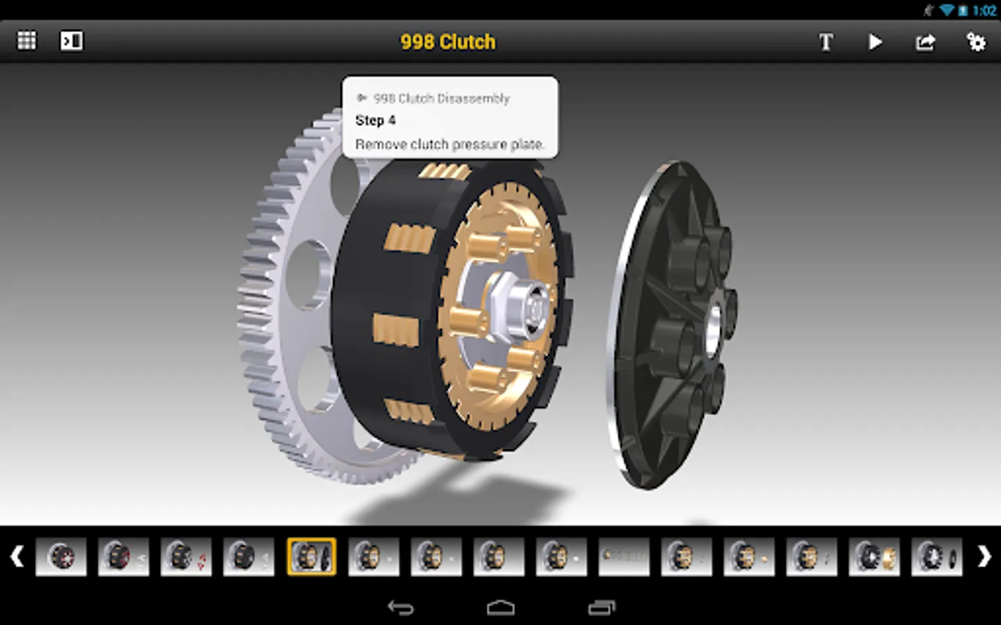 • Search, hide/show, and isolate parts and assemblies, and hide/show step-by-step instruction text