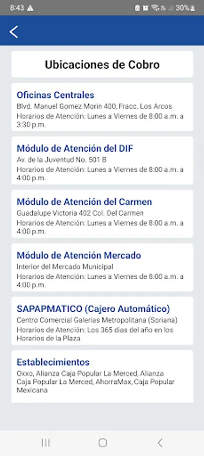 Through the SAPAP App, all users of the drinking water and sewage service of the municipality of Purísima del Rincón can check their last balance by entering their account number. After obtaining your balance you can make the payment of the total balance by using bank cards.