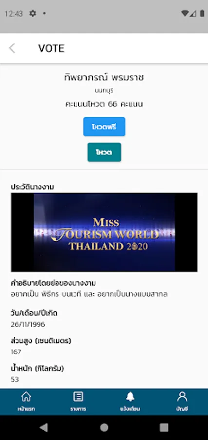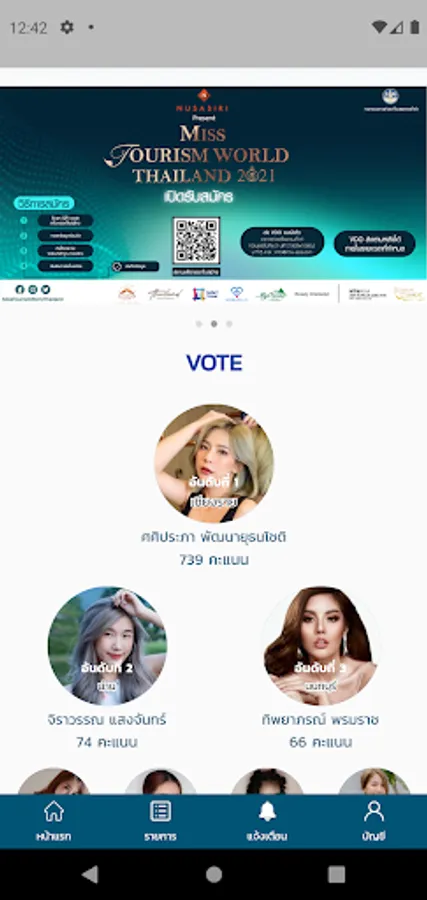 MTW ASIA is an Application Platform that allows everyone to be a part of the Miss Tourism World Thailand contest through voting on contestants and viewing news throughout the contest and activities of Miss Tourism World Thailand. It also includes shopping, gift vouchers, travel. or hotels participating in the Miss Tourism World Thailand contest