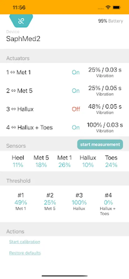 The Suralis App helps you unfold the full potential of your feeling leg prosthesis. You can change settings like vibration intensity and duration, read out sensor values and pedometer data and stimulate your phantom limb map.