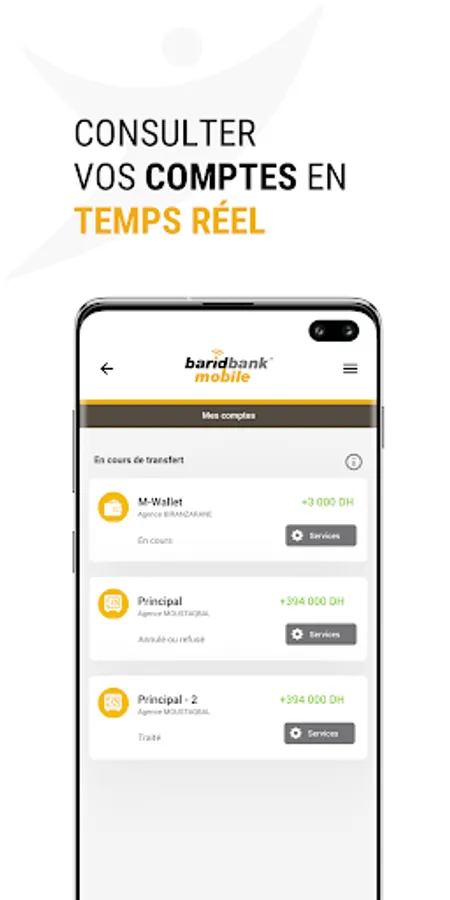 Barid Bank Mobile allows you to access 24/24, through a mobile phone, a set of services that simplify your life.