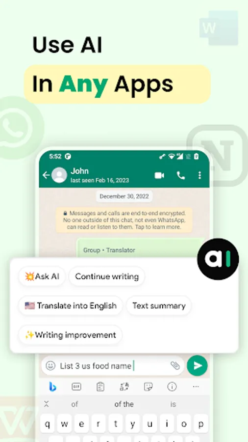 Stuck for a response during a chat? Let AI help you out. Need answers to a tough question? Ask away, no matter where you are!