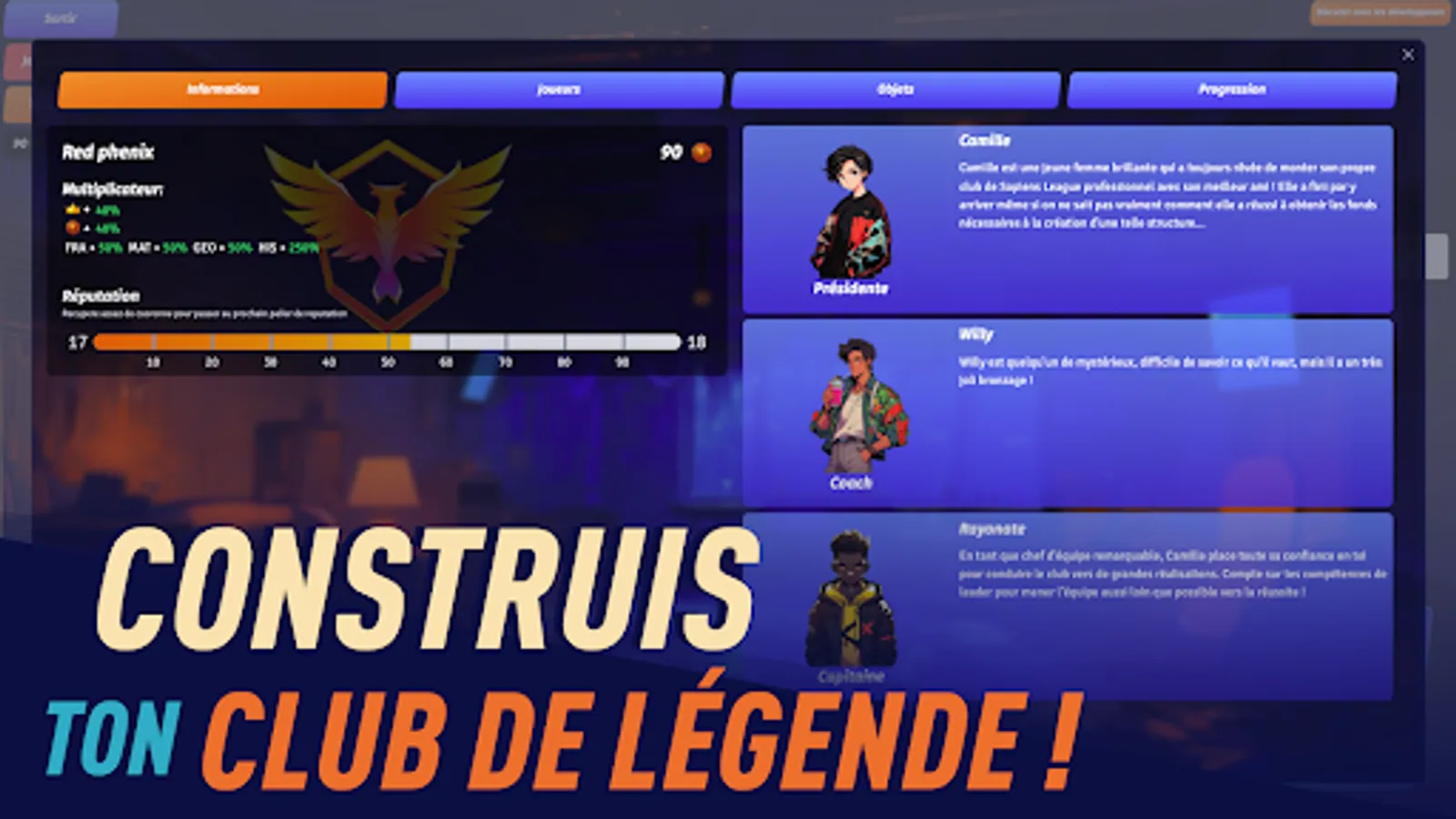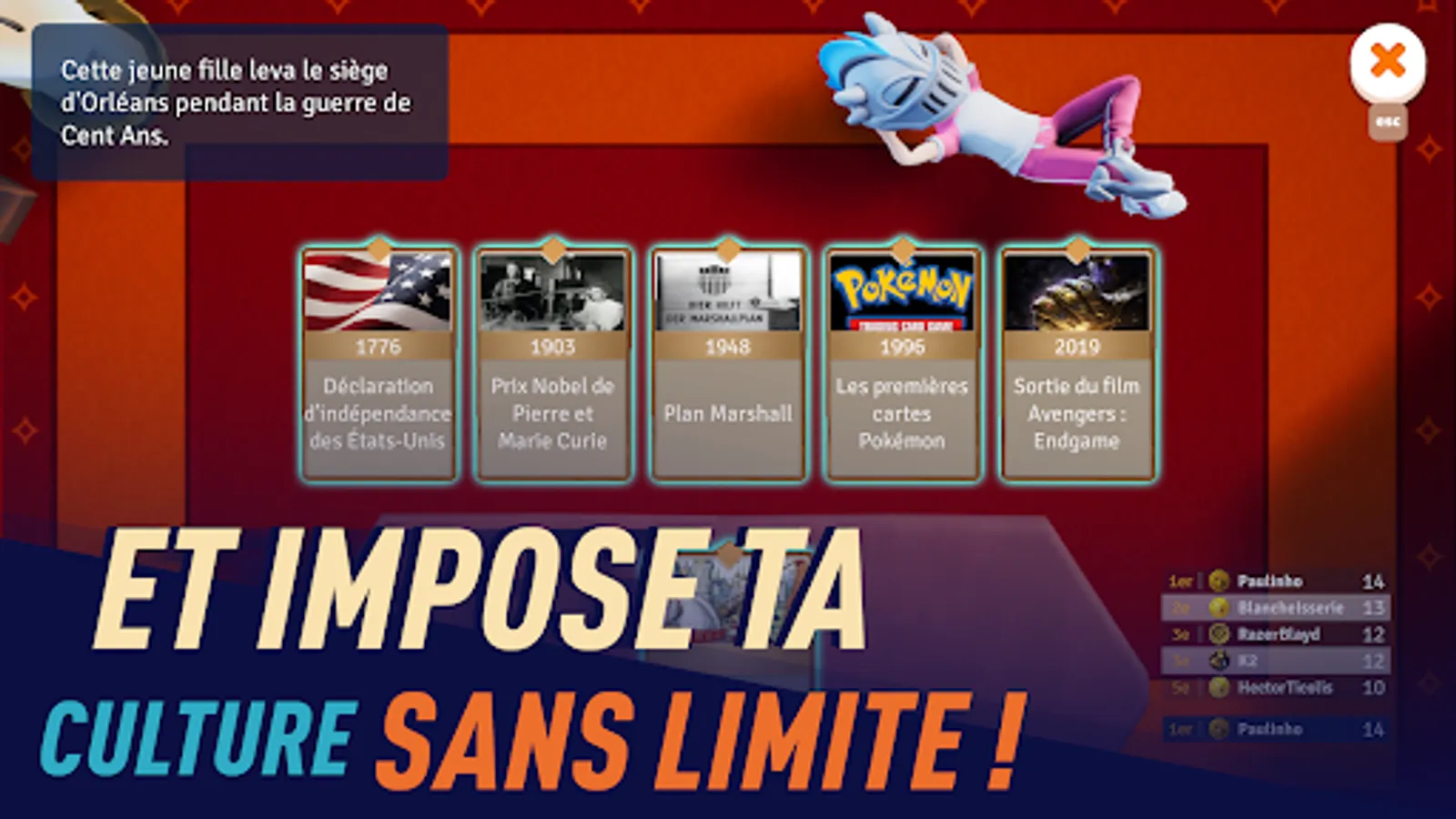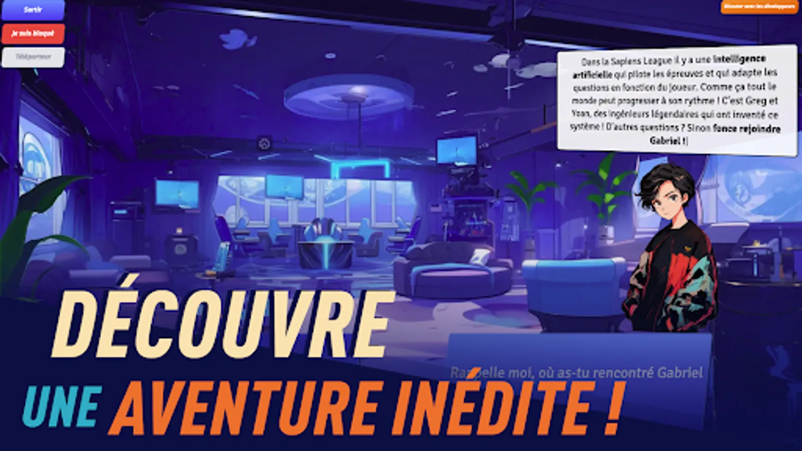 A Sapiens League match is a multiplayer game based on general knowledge mini-games (History, Geography, French and Math). Three tests of 3 minutes follow one another; To win, you have to find the most correct answers in the allotted time. Solo game modes are also available, infinity mode and practice mode.