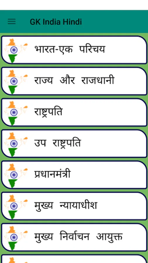 GK India Hindi [सामान्य ज्ञान – भारत] covers following topics in this first version –