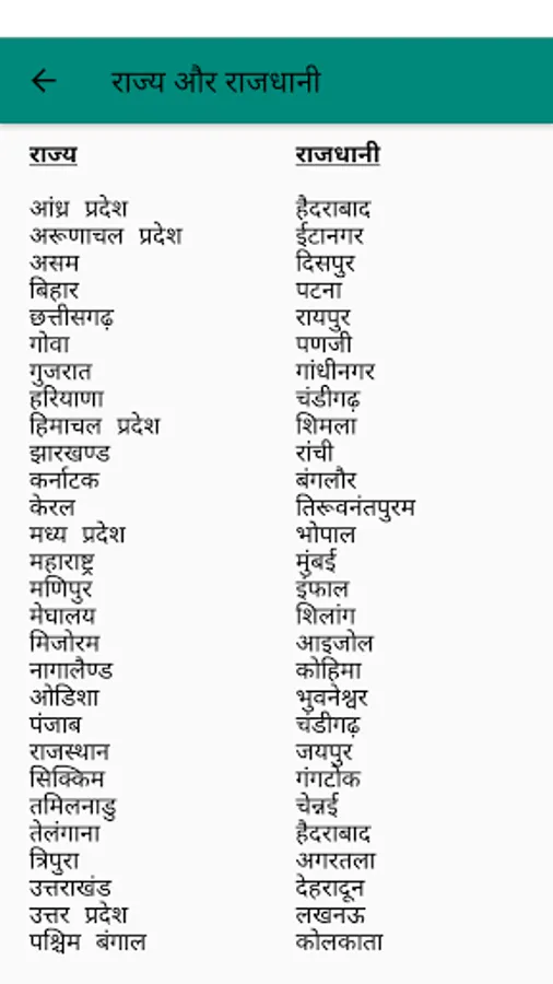 States and Capitals [राज्य और राजधानी]