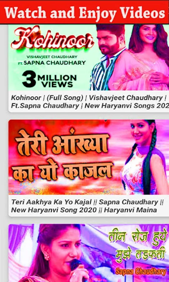 Sapna Choudhary Haryanvi Videos Songs- contains all the latest collection of Sapna Chaudhary songs video. This app is fully free and entertaining app for all of you.