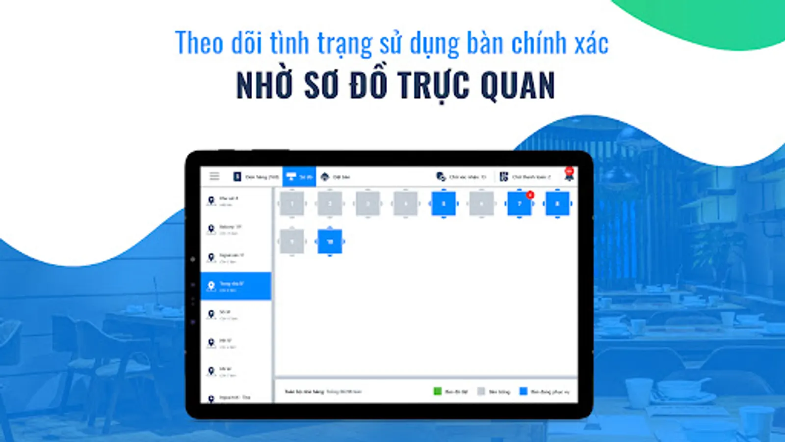 With an intuitive table map for each room and floor, the Sapo FnB application helps you easily check the status of the table in use or empty so that you can arrange tables for guests quickly and conveniently.