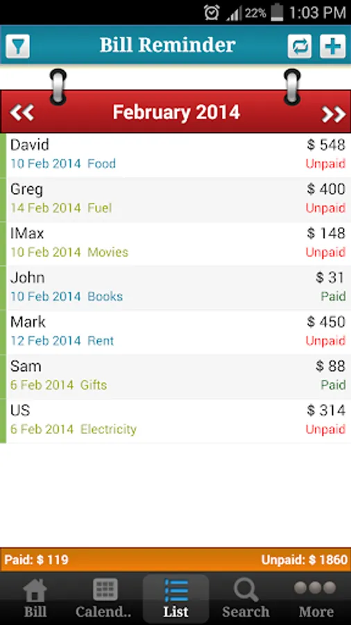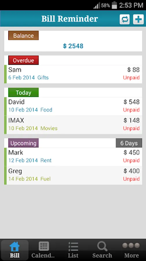 Bill Reminder is the simplest bill tracker around!