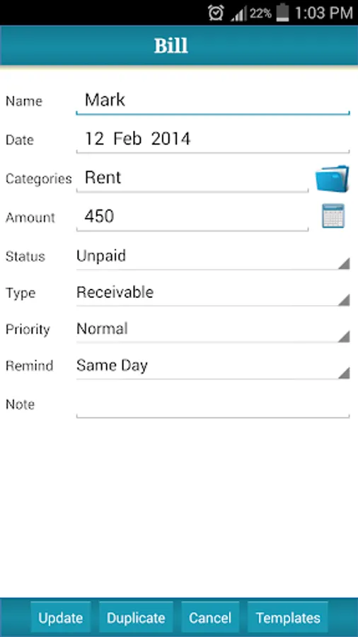 - Use the built-in calculator to quickly calculate bill amounts
