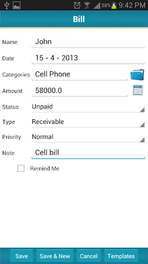 - Remind Bill until Paid option