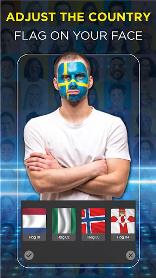 Don't worry if you're not familiar with our app’s face profile flag editor. The app has a simple-to-use interface even a novice can operate. The face editing tools are intuitive and calm to use, with various captivating flag stickers you can transform your patriotic collections into reality within a few taps.