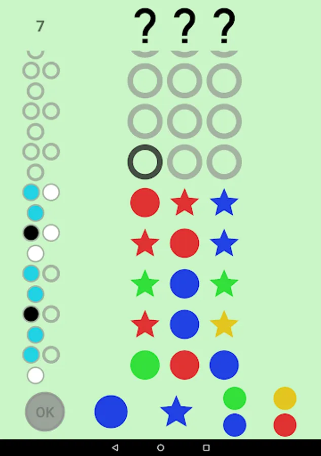 SuperBrain Extreme is a logic game. Find the secret code consisting of colors and forms. Each guess is made by placing a row of code pegs on the decoding board. After every try you get some hints, helping you to guess the code correctly: