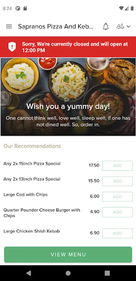 Here at Saprano's Pizza And Kebabs we are constantly striving to improve our service and quality in order to give our customers the very best experience. As a result, we are finally proud to unveil and introduce our latest improvement, our new online ordering app! You can now relax at home and order your favourite, freshly prepared meals from Saprano's Pizza And Kebabs, online. You can even pay online!