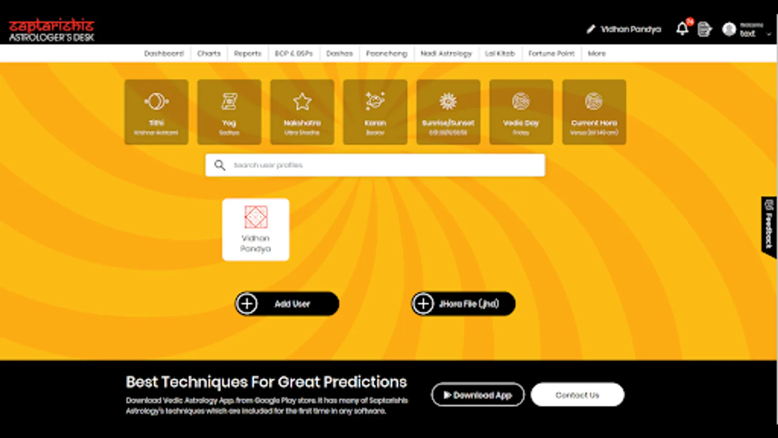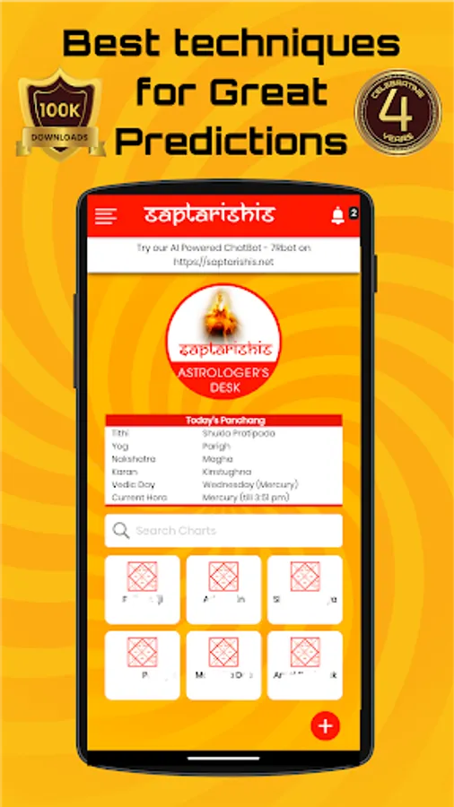 Experience the pinnacle of Vedic astrology with Saptarishis Astrologer's Desk. This unparalleled app offers astrological techniques found nowhere else, including rare calculations and exclusive Saptarishis Astrology methods.