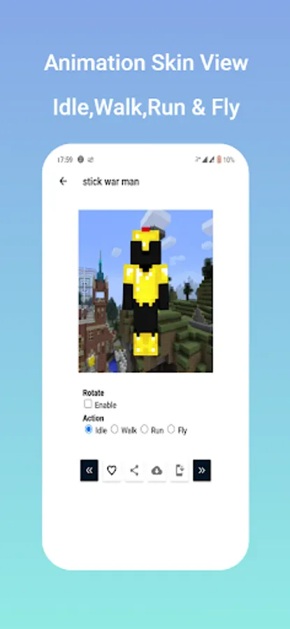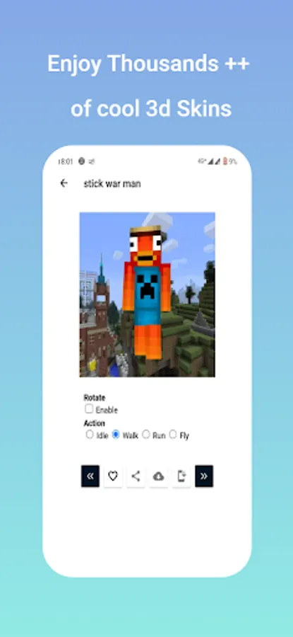 All Minecraft skins in this application have a 3D view. with just one click you can install it in your favorite minecraft game and it will make your minecraft game even more fun with a collection of skins that is always updated.