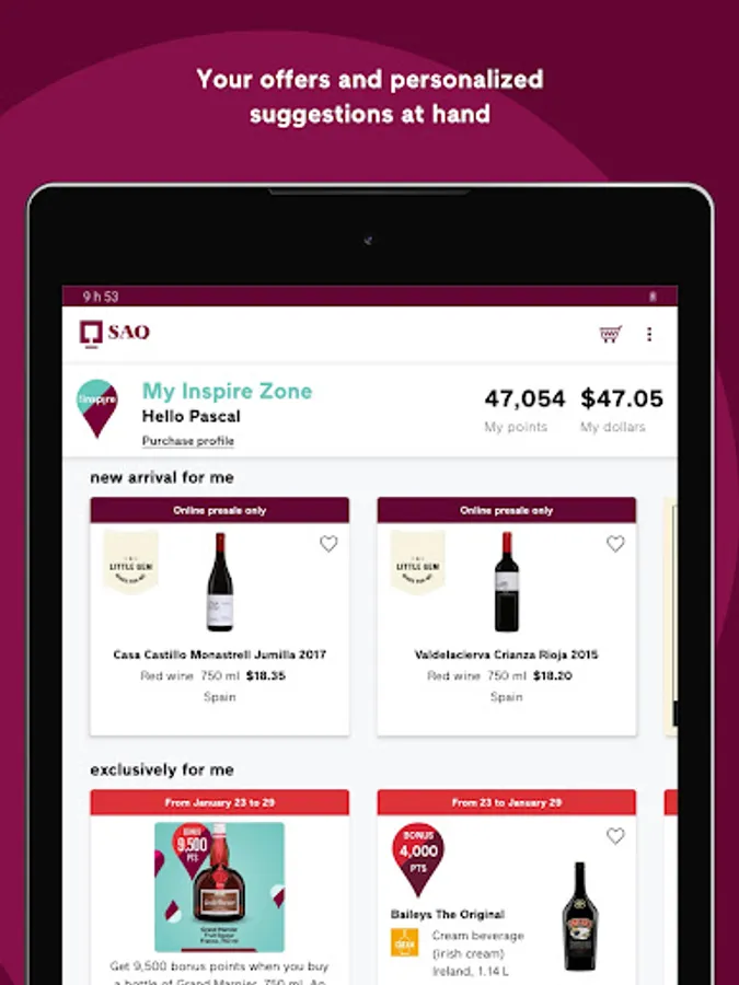 With this application, you can add your Inspire card, view your points balance and your exclusive Inspire offers, buy products, synchronize your favourites with your SAQ.COM account and check out the opening hours of the nearest SAQ!